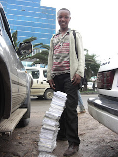 Dit is waarschijnlijk het beste internetcafe van heel Addis. De verbinding werkt. En "Heal the World" van Michal Jackson staat op.. ondertussen is t confronterend hoeveel mensen er bedelend langs lopen en op straat slapen (in de regentijd hebben ze zich in plastic gewikkeld) ....