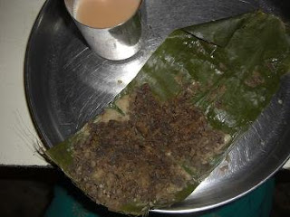 Chai met zoete rijst in een bananenblad als laatse ontbijt :) En jippie, klaar, nog een laatste keer van t uitzicht genieten!