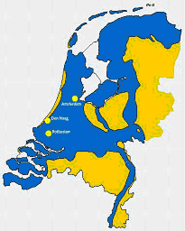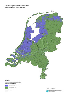Nederland beneden zeeniveau(blauw) (bron: Rijkswaterstaat)