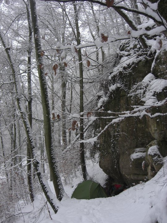 Tussen alle droge verhalen over Ethiopië, een plaatje van iets koelers ;) Luxemburg, eind december. Kamperen in de sneeuw. Alleen voetafdrukken van dieren te zien, van reeën, vogels, hazen... een vredige witte stilte, die verwarmend werkt.
